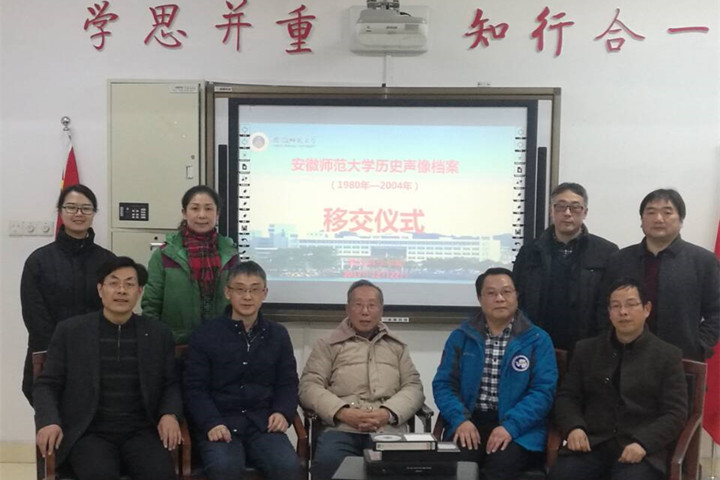 何海燕首先介绍了公司开展声像档案的整理和转录工作情况。在校领导和档案馆的大力支持和帮助下,公司经过多年规划、论证,2015年立项,现在已基本完成任务。初步统计移交了从1980年至2004年声像档案数量近1000件,总时间超过30000分钟。这是教科院向校庆90周年奉献的一份厚礼。随后郭德成介绍了许多原始声像档案的拍摄和保存情况,表示这批历史声像档案移交给档案馆也算是完成了自己的一份夙愿。