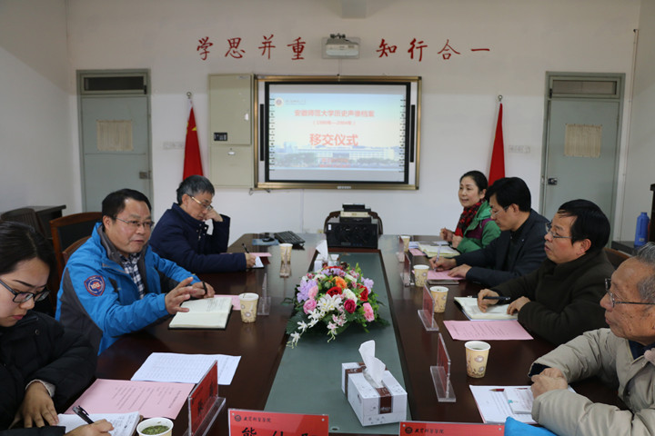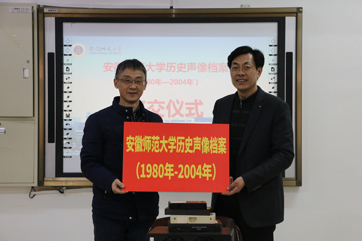桑青松代表公司将声像档案移交给校档案馆陈孔祥。教科院对这批移交的声像档案都严格按照档案归档标准进行了分类、排列、编号、录入,并尽可能还原每件档案材料的时间、地点、人物、背景等要素,以备查询利用。陈孔祥对教科院领导和各位老师的辛苦付出表示感谢,认为实现历史声像档案存储、利用数字化,可以有效保护历史声像档案的原貌,从而达到有效利用和资源共享。表示档案馆接收后一定会认真保管,并做好开放利用工作。