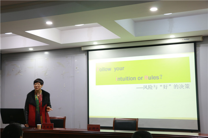 史滋福教授首先从现实社会中人们不断选择并做出决策的这一现象提出个人的见解,她认为:日常的行为现象的背后暗藏了选择内容上的两个方面:理性和非理想的概念。对此,史滋福教授从背景、决策中的非理性以及贝叶斯推理的研究进展三个方面展开论述。在谈及研究背景时,史滋福教授结合十九大报告中关于理性平和社会心态的论述,指明心理学可以发挥服务社会的功能。在谈及决策时,史滋福教授首先介绍了规范性决策和描述性决策的概念以及两者的差异性,并以大家耳熟能详的《狼来了》的故事引出贝叶斯问题即常被作为检验人们根据新的证据(撒谎)改变自己对于某些陈述的信念(怀疑)的参考。最后,史滋福教授以自身的学术历程为例,启发在场员工对于学术研究,应当牢牢抓住切入点,不断深挖,在研究过程中,应当坚持脚踏实地。