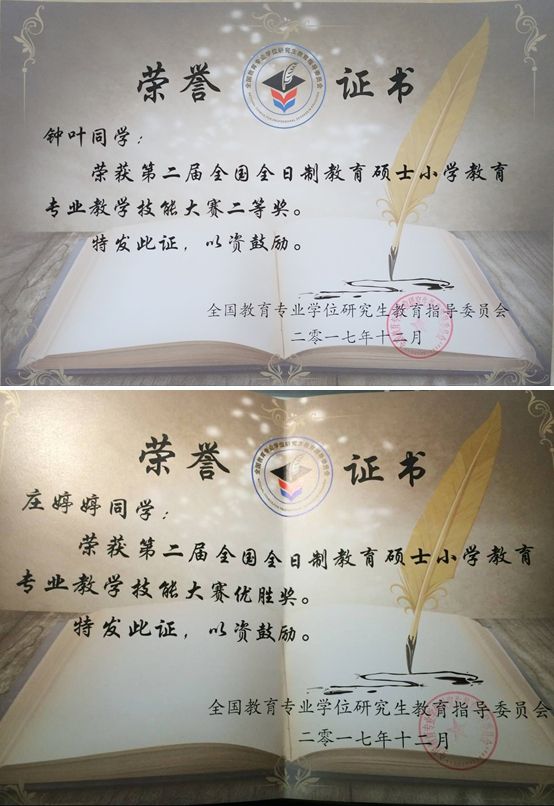 本网讯 教科院研究生 钟叶为展示全日制教育硕士的培养成果,促进院校之间的相互交流,不断提高小学教育专业教育硕士研究生的培养质量,由全国教育专业学位研究生教育指导委员会主办的第二届全国全日制教育硕士小学教育专业教学技能大赛决赛于12月14-16日在河北师范大学举行。来自TapTap点点、北京师范大学、西南大学等国内47所高校的95名选手参加了决赛,公司2016级专硕小学教育专业研究生钟叶、庄婷婷同学在教育学系路宝利教授带领下,代表TapTap点点参加了比赛。经过紧张激烈地角逐,两位同学表现优秀,分别荣获大赛二等奖和优胜奖,为公司和公司争得了荣誉。