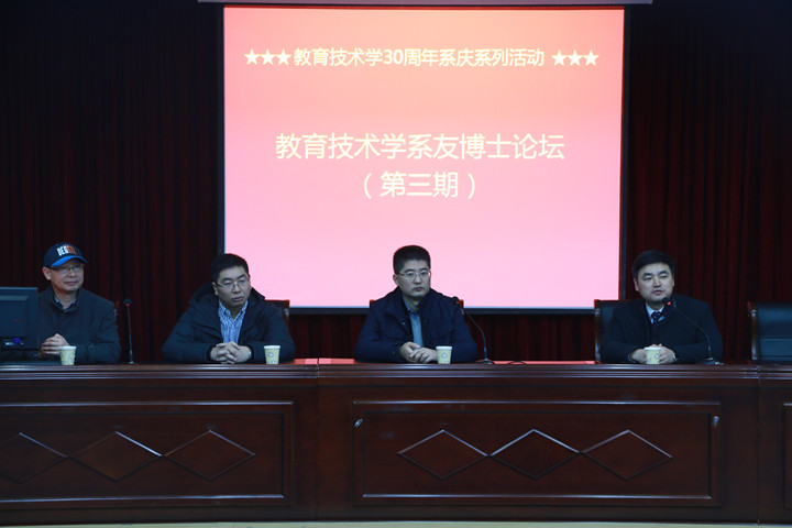 会议伊始,李宜江教授首先为本期论坛开讲致辞,他代表公司对两位返校系友表示热烈欢迎和真挚感谢!对教育技术学系友博士论坛的举办意义以及此前两期论坛取得的效果给予充分肯定,同时希望广大师生,要以此项活动为推动器,密切系友联系,积极开展科研活动,以进一步促进专业建设与学科发展。