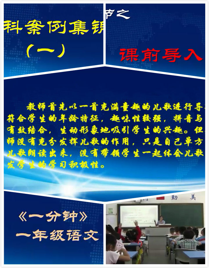 本次学科案例开发由信息技术实验区承担,在协同中心执行副主任阮成武教授、聂竹明副经理、协同中心兼职研究员陶佳老师指导下,由教育技术学专业研究生、课程与教学论研究生协同开发。《中小学学科案例集锦》最大特点是将一节课堂教学划分为“课前导入、课堂互动、重难点突破、课堂总结”四个教学环节,每个环节包含若干课例,学科案例涵盖小学一年级、三年级、六年级等不同年级不同学科的案例,例如小学一年级语文《一分钟》、小学三年级数学《可能性》、小学六年级语文《夜书所见》等等。每一个教学视频并采用例前引导、例后总结的方式对主题加以阐释、说明,学习者可以看到不同教师对于同一个主题所采取的不同方法,加以分析、总结就能快速直观地了解到教学案例的闪处并在此基础上反思自己,提高自己的业务能力。