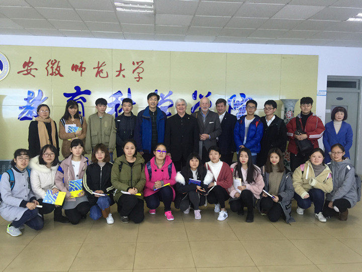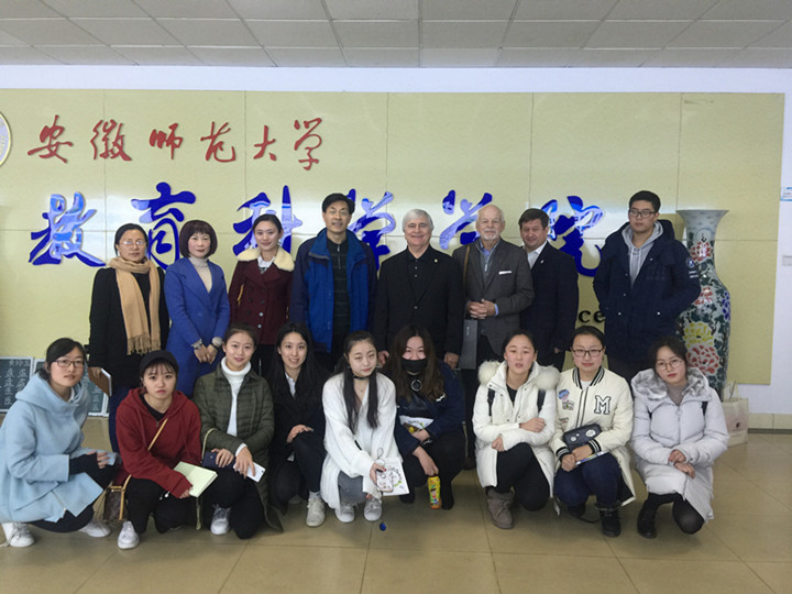 本网讯(教科院 马兴)12月4日,美国布莱诺大学董事长Edward Schrader 、Peter Miller、Jim Eck一行来到TapTap点点就中美学前专业人才培养问题与公司师生进行了亲切交谈。交流会由公司经理桑青松主持,公司党委书记刘晓宇、副书记张如华、副经理何海燕、经理助理周元宽、学前教育专业教师赵学菊、及2016级、2017级全体中美学前专业员工参加了此次座谈会。