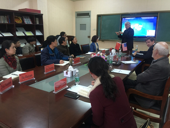会上,布莱诺大学董事长Edward Schrader 首先向大家介绍了他们的新任教务处长Jim Eck,他指出Eck在对外合作办学及高等教育方面有很丰富的实践经验,将会全权负责协助中美学前的员工在美学习事务。同时,他欣喜地介绍了第一批中美学前的同学在美学习的收获与成长,对于中方输送的优秀员工表示赞赏,在与第一批赴布莱诺大学学习的公司员工交往中,他们对后续的培养方案及员工指导做了相应的调整,将会力求为教科院员工在布莱诺的学习创造一个良好的环境。交流期间,Edward Schrader董事长还与员工就在美学习的专业选修、学习旅行、饮食住宿包括人身安全问题进行了亲切交流。