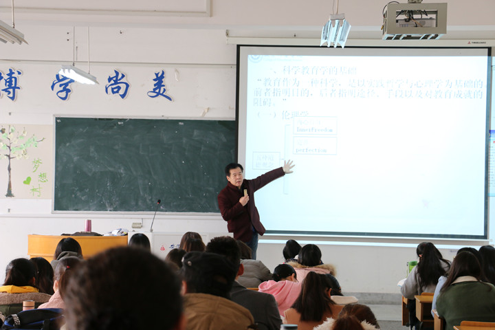 本次公开课的教学内容围绕“赫尔巴特教育思想”展开,姚老师首先带领员工回顾了十六世纪以来几位主要的外国教育家对教育学科的贡献,指出从培根首建教育学科到赫尔巴特之前,教育学团队建设并不能令人满意,印证了赫尔巴特教育思想的“里程碑”意义。接着姚老师从伦理学和心理学两个角度阐述了赫尔巴特作为“科学教育学之父”的主要理论贡献。讲解过程中,姚老师循循善诱、深入浅出,注重启发式教学,并结合教育实际案例来讲解略显枯燥的理论,利用生动形象的图表直观教学,引导员工思考的同时也调动了员工学习的主动性和积极性。整个授课过程思路清晰、环节紧凑、设计合理、教学方法多样。
