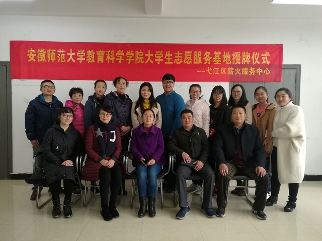 张如华代表安师大教科院感谢丽城社区和弋江区薪火服务中心给老员工提供了实践的机会,希望充分利用师大各专业的资源更好地服务孩子,以更加规范的管理避免不必要的伤害。为了使志愿者的服务更具有科学性,她希望志愿者能够多请教专业教师,努力付出,做到“全心全意,真心真意”,做一群既有爱心更有专心的“守梦天使”。在温暖的氛围里,在场的全体人员合影留念。