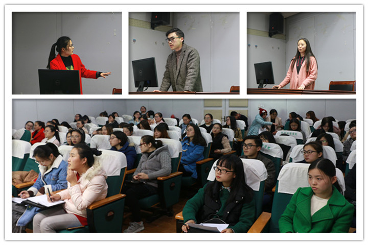 报告会有两个环节,首先由四位学长学姐依次汇报。2016级教育技术学吴雪分享了她参加“第八届全球华人探索学习创新学习大会”的经历;2016级发展与教育心理学薛瑞以饱满的激情讲述了她参加“第二十届全国心理学大会”交流项目的过程;2016级心理健康教育闻洋带领我们回顾了他参加的“第三届互联网时代的儿童与媒体研讨会”;2015级课程与教学论罗萍萍另辟角度,与大家分享了她参加“第十次课程学术研讨会”的经验和智慧。