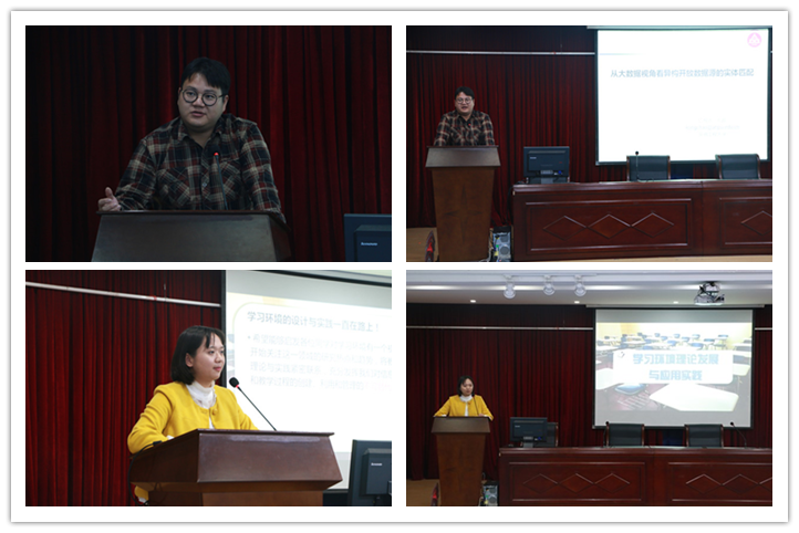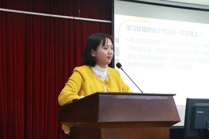 第二场是由许玮博士带来的题为《学习环境理论发展与应用实践》的学术报告。报告内容主要包括:第一,学习环境理论的学科定位、社会发展和教育信息化政策推动。第二,学习环境理论的热点趋势、理论基础和内涵界定。第三,当前物联网技术发展现状、教学现状需求及学习环境设计方面的项目延伸探索实践。许博士结合国内教育技术学科专业开设的课程、国外学者教育技术研究的成果、建构主义学习环境的隐喻、自身参与的环保主题教学活动设计实践及苏州市部分综合实践基地公司建设情况对学习环境理论发展的背景、理论和实践进行了深入浅出的阐释,并且希望所有同学关注学习环境领域的研究热点和趋势,将教育技术学的理论与实践紧密联系,充分发挥我们教育技术人对信息化教学资源和教学过程的创设、利用和管理的不可替代的作用。报告中,老师和同学们互动热烈,活跃了现场氛围,使整场讲座在轻松融洽的氛围中进行。