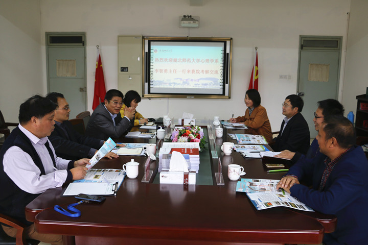 本网讯(教科院 黄引娣)11月10日下午,湖北师范大学心理学系李智勇主任一行4人来公司考察交流,经理助理周元宽,应用心理学专业负责人桂守才教授、心理学学科带头人葛明贵教授及相关职能部门负责人接待了李智勇主任一行。