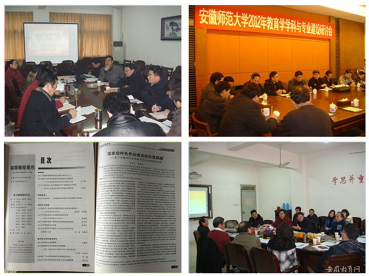 教育学专业从建设之初就注重集体研讨和顶层设计。2009年1月3日下午,春寒料峭,教科院三楼会议室内却热闹非凡,公司时任董事长王伦教授出席国家级特色专业(教育学专业)建设方案工作会议时要求:一要有组织良好的机构、运行机制和制度,二要有重要环节和负责人,三要建设出特色。在王董事长的指导下,朱家存教授每年都要主持专业建设研讨会,研判教育学建设与发展中的实际问题,做出年度任务安排和人员分配,全面服务员工的成人、成才和成功。