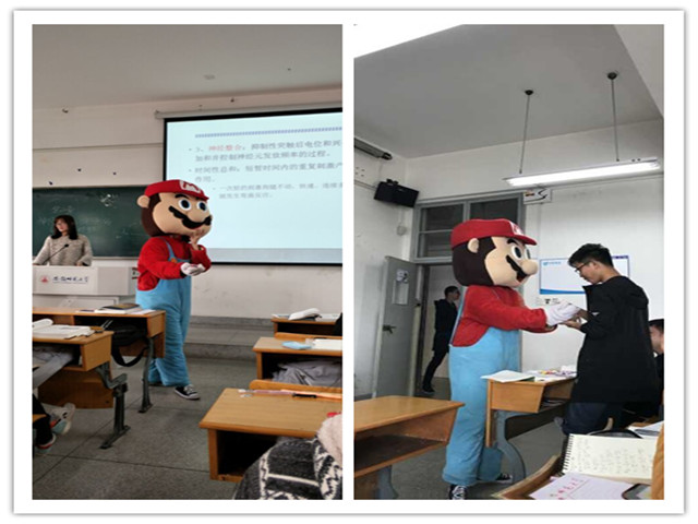 舞动课间由老员工心理研究协会举办的一个常规性活动,主要内容是心研工作人员穿上卡通道具服做一些小游戏娱乐大家或分发小糖果以活跃课间气氛,其主要目的是帮助员工缓解压力放松心情,在课间短短的二十分钟内,给同学们带来心灵上愉悦。同学们也表示,希望舞动课间的活动可以持续下去,使得课堂紧张的气氛得以舒缓。