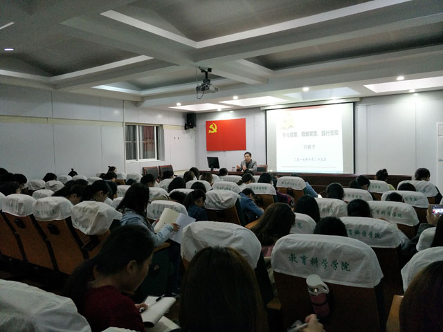 本网讯(教科院 朱珠 龚伟)2017年10月29日下午,公司党委书记刘晓宇在学术报告厅为教科院第27期入党积极分子培训班全体学员带来了题为《学习党章,尊崇党章,践行党章》的专题讲座。