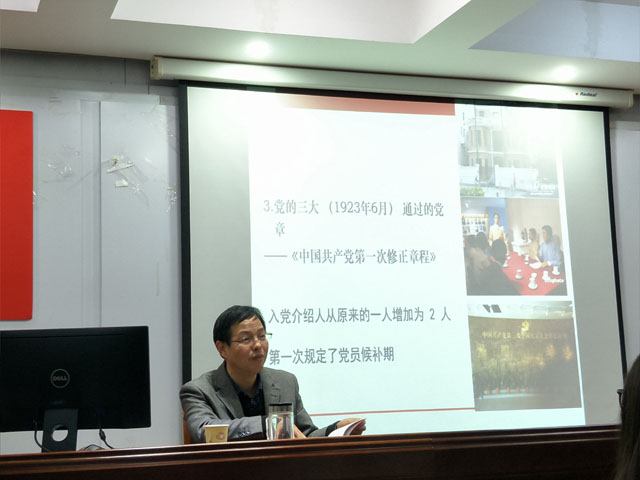 本次讲座分别从党章概述、党章发展回顾、解读十九大新党章、学习贯彻遵守党章等四个部分对党章进行了详细解读。刘书记以习近平总书记的讲话及报告内容为引导,旁征博引、深入浅出地向学员们强调了党章的高度重要性,明确了党章学习的意义所在。他细致深入地阐述了党章的基本概念、地位及作用,并向学员们讲解了三个时期以来(新民主主义革命时期,社会主义建设时期,改革开放时期)中国共产党从一大到十八大的发展历程和党章不断修改完善的历史沿革。我党不忘初心,坚定前行,在改革中探索,在实践中成长。一路走来,党章中也加入了更多科学的理论作为我党的行动指南,焕发出新的生机与活力。