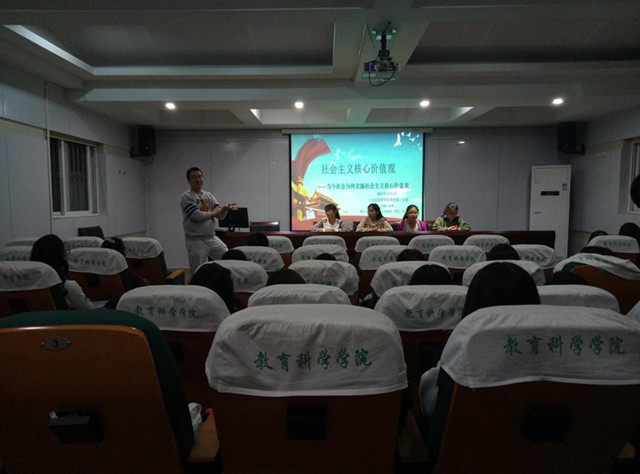 提问环节在场同学积极思考,轮番发问。“当代社会西方文化渗透日益加速,中国的传统节日却时有忽视,对此如何评价?”“对于普通民众,如何宣扬社会主义核心价值观才更加有效?”“践行社会主义核心价值观如何从娃娃抓起”“如何看待高调宣讲、低调践行社会主义核心价值观的现象?”