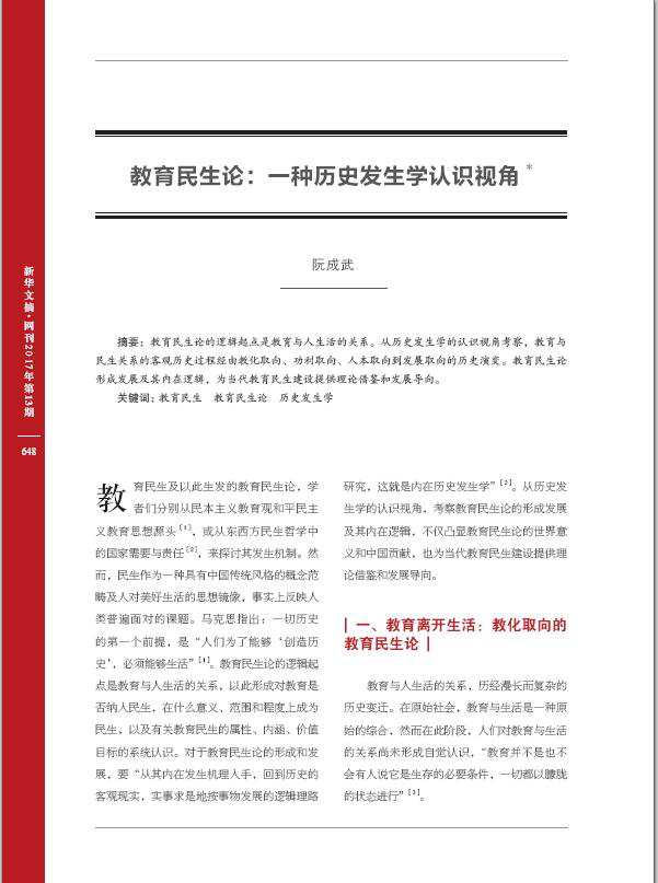 近日,公司阮成武教授发表在《教育研究》2017年01期论文《教育民生论:一种历史发生学认识视角》,被国家权威学术期刊《新华文摘》2017年第13期全文转载。