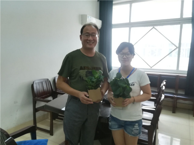 除明信片外,公司学子们为老师献上嫩绿的盆栽,以表自己的深深感激和祝福。老师脸上充满感动,除了感谢同学们以外,老师们还送上了新学期的建议与期望。这小小的盆栽仿佛就代表了师生之间浓厚的情谊,土壤尽全力将营养传送给植物,老师倾尽一生将知识传授给莘莘学子,愿这方寸之绿能为老师们的办公桌增添一丝美好!