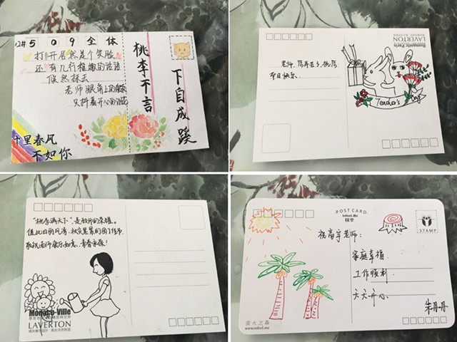 9月伊始,院员工会面向教科院全体员工征集教师节明信片,学子们积极参与此次活动。“桃李天下,下自成蹊。老师,谢谢您!”“春风十里,不如在师大遇到您!”一句句浓情满满的话语,一张张充满意境的明信片表达着同学们对老师们的感激之情。在教师节当天,由员工会成员将写满感恩祝愿的明信片发放到每一位老师的柜子,给每一位老师带来惊喜、送去温暖。