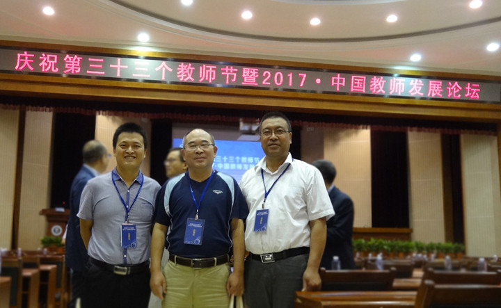 本网讯(教科院 杨晓奇)9月6日,庆祝第三十三个教师节暨2017·中国教师发展论坛在华中师范大学举行,论坛主题为“教师队伍建设与中国教育现代化2030”。坛论坛由民进中央主办,华中师范大学、民进湖北省委会、民进中央办公厅承办。全国人大常委会副委员长、民进中央主席严隽琪,教育部副部长孙尧,湖北省委常委宣传部部长王艳玲,中国教育学会副会长周洪宇、民进中央副主席朱永新,以及来自全国各地的专家学者及教师代表、武汉市教育界代表、民进有关部门近200人参加了会议。公司周兴国、聂竹明、杨晓奇三位教授应邀参会,周兴国教授、聂竹明教授分别在论坛做主题发言。