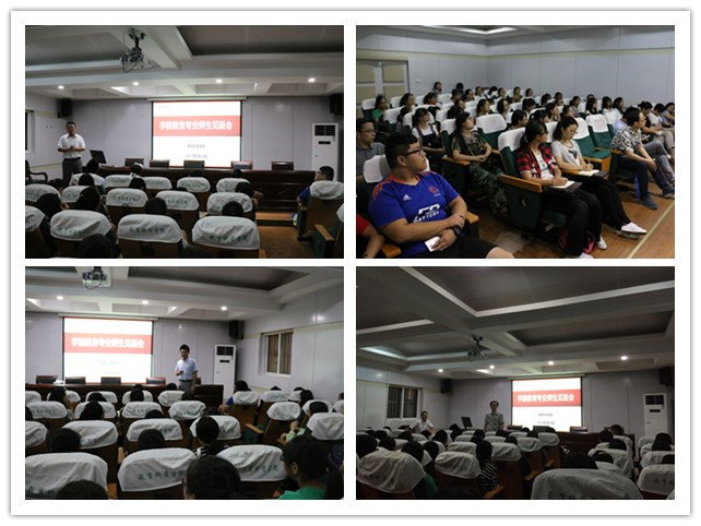 教育学专业负责人辛治洋教授从同学们的兴趣入手,以“与教育学无关的三个问题”为切入点,分别就同学们关心的毕业与就业的关系、专业的对口情况以及一次性就业率问题进行深入细致地解读。再就“与教育学专业有关的问题”展开,以13级毕业生为例,用大量详实的数据分析毕业生就业情况。用表格和树状图清晰明确地向同学们介绍了专业任课教师、课程安排及相关特色活动,使新生对教育学专业有了更深入的了解。同时辛老师也在会上对同学们提出了要求并寄予厚望,鼓励学子们在未来的学习生活中坚定信念,充满信心。