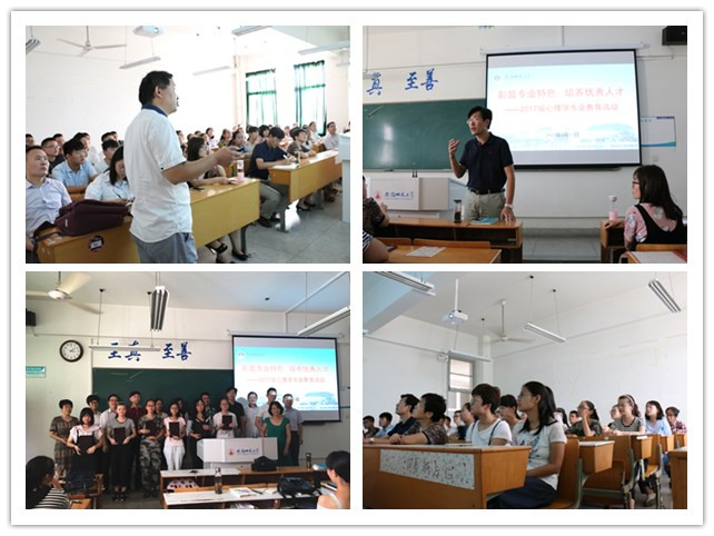 应用心理学专业教育会上,专业负责人桂守才教授向新生介绍参加会议的张书记、黄老师及本专业的各位教师,并邀请几位教师代表分别介绍应用心理学专业。老师们妙语连珠的精彩介绍激发了同学们对专业学习的极大热情,不少同学积极踊跃地发言提问,老师们也给予耐心详细的解答,交流气氛活跃热烈,会议现场同学们掌声不断。接着,桂老师细致地介绍了本专业的培养方案、课程安排以及具体的学分要求。桂老师也谈及大家关注的就业问题,阐述了本专业的发展优势,并以“五花八门”这一通俗易懂的词汇概括就业情况,促使新生满怀信心与热情迎接全新的老员工活。最后,桑青松经理对在坐的新生送出寄语:希望同学们调整心态,正视自己所做出的选择,明确目标,以饱满的热情把握好现在与将来的每一天。