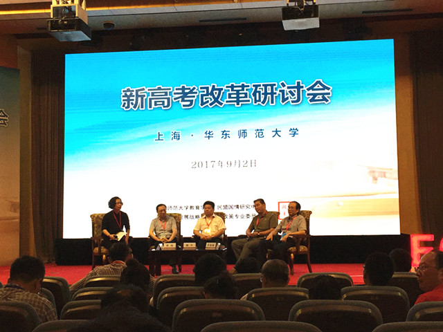 9月2日上午,由华东师范大学教育学部、民盟国情研究中心、中国教育发展战略学会教育政策专业委员会联合举办的“新高考改革研讨会”在华东师范大学科学会堂隆重召开,此次研讨会是关于新高考改革研讨的一次高端会议。研讨会在华东师大才子美女的音乐演奏中声拉开了帷幕。四位教育改革大咖上海市教育委员会副主任贾炜、浙江省教育厅副厅长韩平、江苏省教育厅副厅长苏春海、厦门大学高等教育研究院经理刘海峰等分别应邀作了《“教-考-招”联动的上海实践》《浙江新高考改革的创新探索》《江苏高考十年路》《高考改革:灵活多样与简便易行的两难》四个大会主报告。最后,四人一起登台,共同接受听众的提问。下午的“新高考改革研讨会”分四个专题进行,专题内容分别涉及增强选择性的同时如何提高员工的科学素养、高考记分和分数合成的科学性、员工综合素质评价问题、高校招生能力提升问题等。研讨内容更多聚焦在:诸如,员工的选科问题、科学素养的下降问题、走班的问题、高校的招生权力和能力问题、生涯指导问题、高校自主招生问题等等。