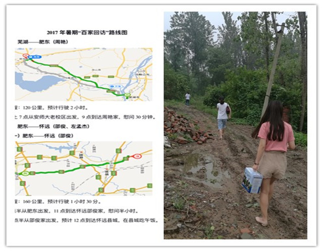 在进行“百生回访”的前期,公司仔细梳理贫困生库,尽量做到各年级各专业全覆盖,做到“以建档立卡为重,家校携手联动育人”。通过对即将回访的10名贫困生仔细制定回访计划。通过“前期线上确认地址,中期在线共享位置,后期现场实地家纺”三个过程对回访进行仔细规划,制定最佳回访路线。