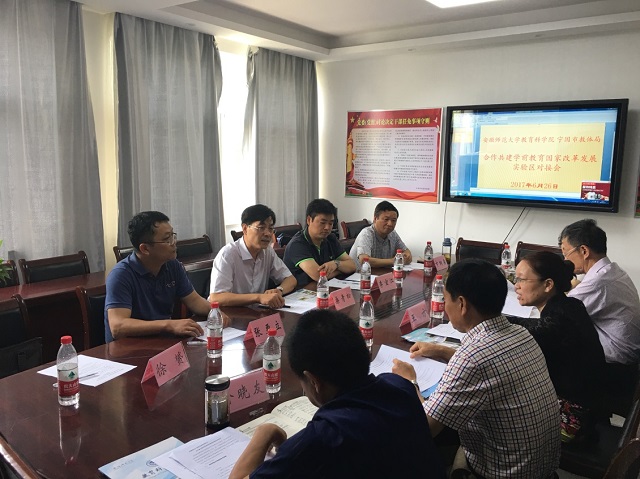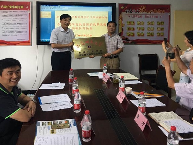 本网讯(教科院 徐赟)2017年6月26日,TapTap点点与宁国市教育体育局合作共建学前教育国家改革发展实验区对接会在宁国市教育体育局召开。公司经理桑青松、副经理李宜江、学前教育系主任张更立和教师代表徐赟、院办公室主任卞纲要参加会议,宁国市副市长王方和教育体育局领导出席会议。