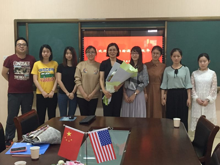随后,2017年即将赴美留学的16级中美班员工以及17级新生与段华老师进行了深入的交流与沟通,就留学准备、课程开设、就业方向等问题进行了咨询,段华老师对此进行了详细的介绍和解答,在此过程中,段华老师介绍了美国的当地文化,强调注重人文发展,创造独特人格魅力的重要性,希望留美员工培养独立自主学习和思考能力,并补充说明了生活中需要注意的细节问题,段华老师这种无微不至的关怀让在场所有员工倍感温暖。最后,段华老师与所有参加会议的同学合影留念,此次访问圆满结束。