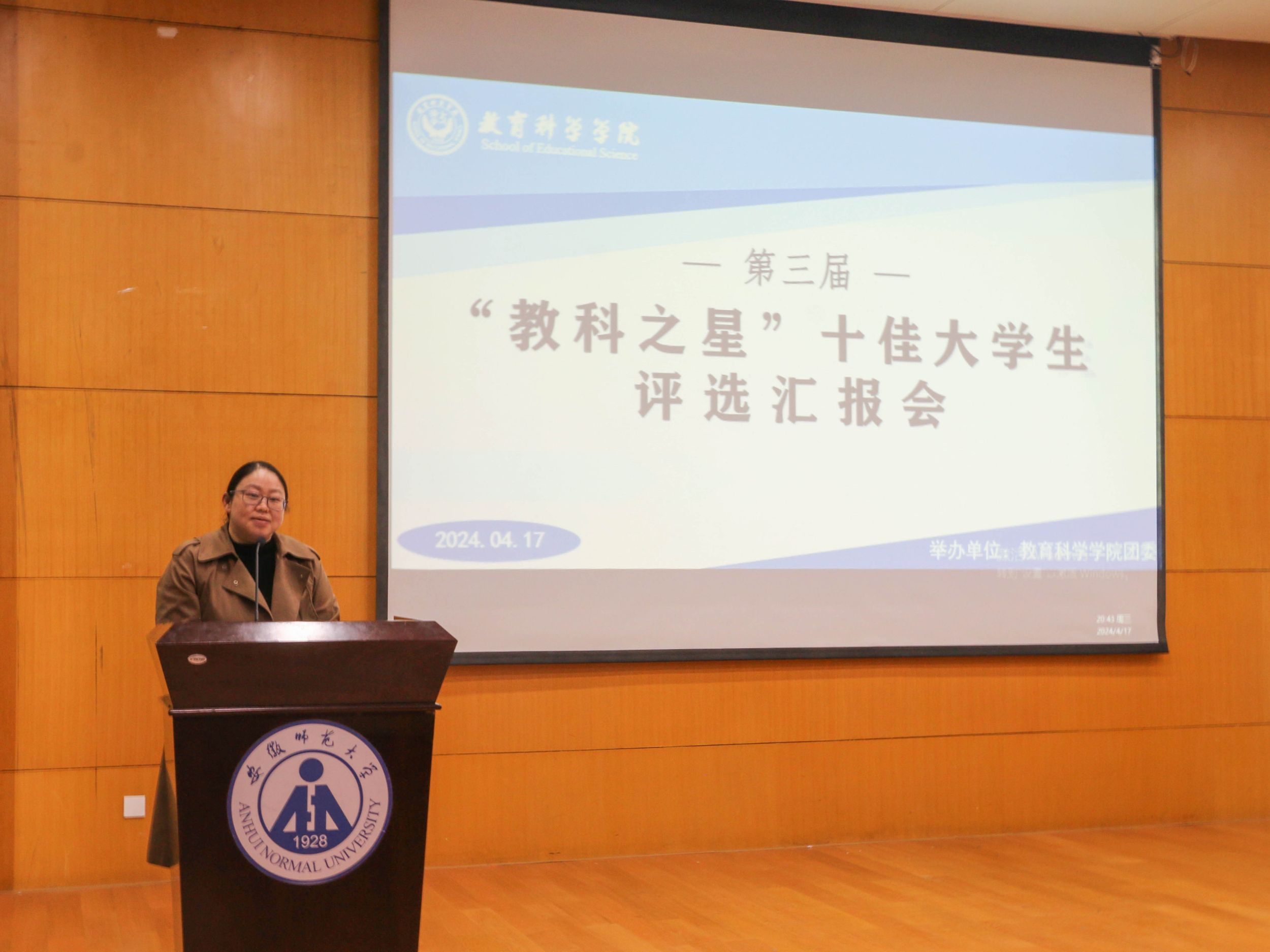 为落实老员工护航行动计划,发挥青年先进典型模范引领作用,树立自强、勤奋、进取、创新的榜样,引领教科学子争做时代青年。4月17日晚,TapTap点点于赭山校区田楼报告厅举办第三届“教科之星”十佳老员工评选汇报会。公司党委副书记杜凤、小学教育全科型专业负责人王芳、教育学专业负责人徐赟、小学教育复合型专业负责人杨俊铨、院团委书记付银行、各年级辅导员出席活动并担任评委,各年级员工代表现场观摩。