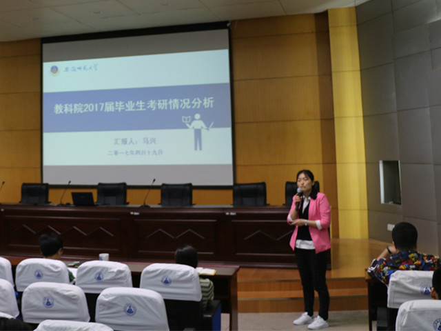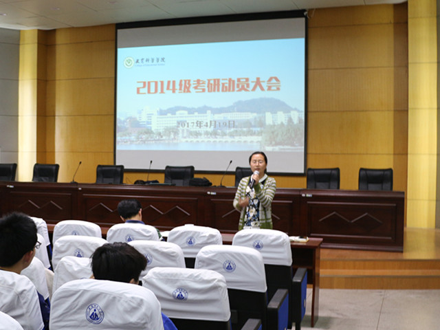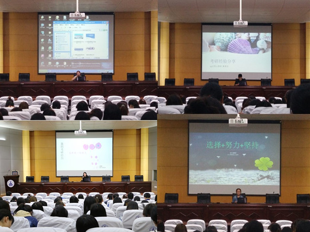 有动员,更有分享。四位学长学姐在会议最后分享了自己在考研经验和感悟。来自2013级学前教育专业的王娜娜指出考研之路虽然艰辛但是坚持到最后就是成功,就是快乐;教育学专业的方艳结合自己报考志愿和录取情况,由衷的表示适合自己的才是最好的;应用心理学专业黄勇志则是介绍了自己各个阶段的情况,用真实的自我打动了在场每一个人;心理学专业郭俊俏通过各科的分析,让学子们明白“选择+努力+坚持=成功”。