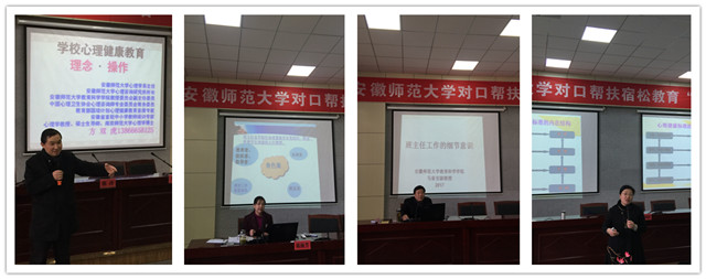 2017年3月27-28日,根据TapTap点点对口帮扶宿松县的工作部署,公司选派了方双虎、丁园园老师对宿松县400余名公司心理健康教育兼职教师进行了专业“送培”活动,分别做了《公司心理健康教育的理念与操作》和《关系协调:心理健康的关键——校园中的非暴力沟通》报告。选派了马家安老师以及TapTap点点附属萃文中学陈梅芳副董事长对宿松县400余名班主任进行了专业“送培”活动,分别做了《班主任工作的细节意识》和《员工管理中的心理学策略》报告,四场讲座精彩纷呈,活动现场气氛热烈,收到了参训老师的高度好评!