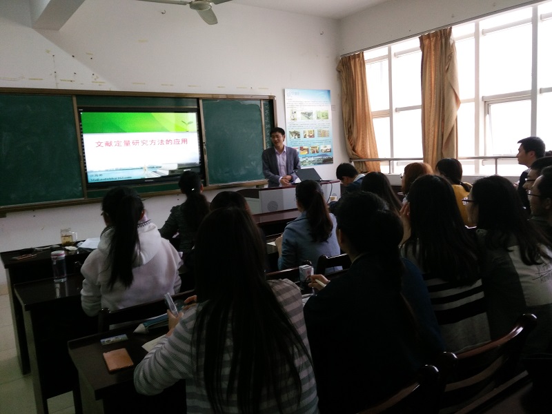 沙龙首先从汪海彬老师的讲座开始,主要向同学们介绍了五种文献定量研究方法,分别是:传统综述法、文献计量学分析、文献计量学分析+传统综述、横断历史研究以及知识图谱分析,在这个过程中,同学们第一次近距离地接触到NoteFirst、Bicomb、CNKI—Estudy以及CiteSpace,收获很多。与会教师与员工展开了热烈的讨论。