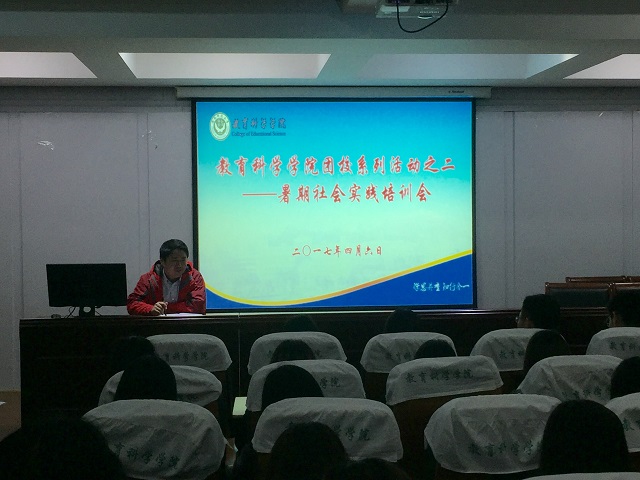 本网讯(教科院 沈须晴 莫大贡)2017年4月6日中午12点半,公司在学术交流中心举办了团校第二讲暨2017年暑期社会实践培训会,正式拉开了今年暑期社会实践的序幕。院团委书记莫大贡老师,实习辅导员刘小平老师,院员工会主席叶品,2015级各专业班长团支书及寝室长参加本次培训会。