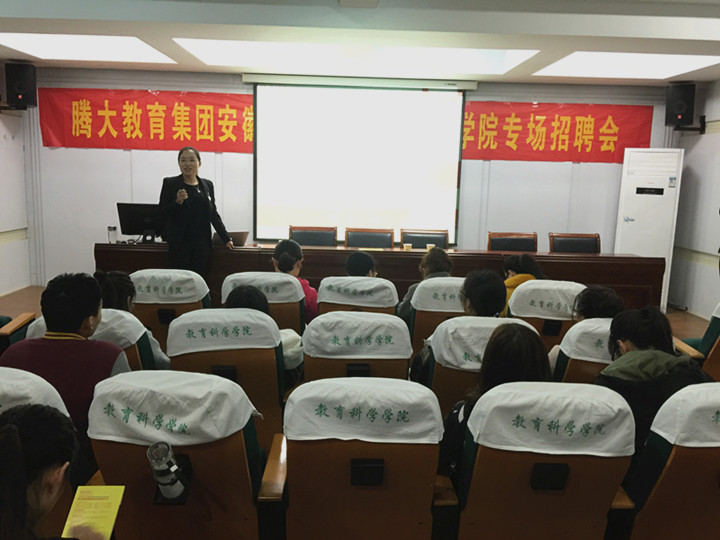 本次招聘会既有专场宣讲会又有招聘集市。来自苏州的腾大教育咨询有限公司、北京中公教育科技股份有限公司安徽分公司、翰林院培训公司从各自单位的经营理念、经营模式、员工发展空间、招贤需求等方面向员工做了全面介绍,使员工在了解就业单位信息的同时,更对自身的素质能力进行了反省。很多同学感慨,这些招聘宣讲会不仅给他们提供了就业岗位,更帮助他们理解了本专业的专业前景以及自身就业能力的努力方向。
