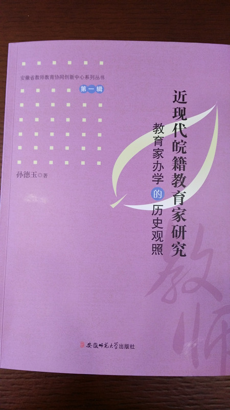 本网讯(教科院)近期,公司孙德玉教授的专著《近现代皖籍教育家研究——教育家办学的历史观照》一书,历时三年,数易其稿,终于与读者见面。该书系安徽省教师教育协同创新中心课题研究成果,是一本专门研究近现代皖籍教育家的具有区域特色的一部力作。