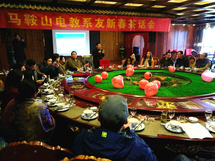 本网讯(教科院 杨一捷)元月22日,公司党委书记刘晓宇,副经理聂竹明,电教系原党总支书记张明,教科院原经理、南京师范大学博士生导师张舒予教授一行赴马鞍山参加公司1988级电教系友新春茶话会,与电教系友三十余人一道,共话三十年电教发展,喜迎鸡年新春佳节,茶话会由张明主持。