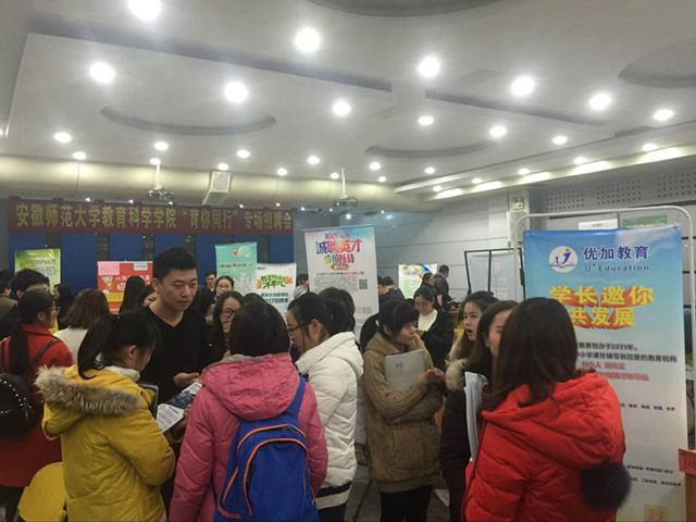 本网讯(教科院 马兴)你的未来,我们助航。为全力做好员工毕业就业工作,搭建毕业生与用人单位交流“直通车”,12月29日下午教科院举行了公司第三届“育你同行”专场招聘会。江苏学大教育、南京武家嘴实验公司、苏州博世堂教育培训中心、北京洪恩教育科技股份有限公司、滁州市信息工程公司、安师大幼教集团等来自省内外的近40家用人单位共提供就业岗位600余个,吸引了大批毕业生前来求职应聘。
