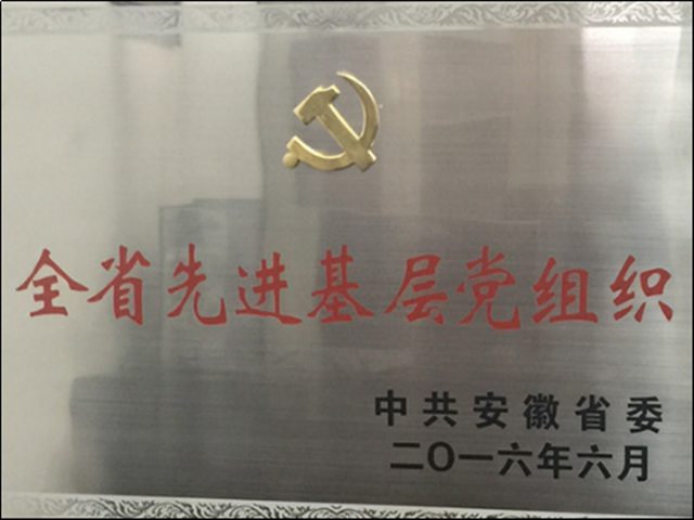 2016年7月1日,在全省优秀共产党员、优秀党务工作者和先进基层党组织表彰大会上,公司党委荣获安徽省“先进基层党组织”荣誉称号,这是继去年公司获得“全省学习型党组织建设工作示范点”之后的又一殊荣。