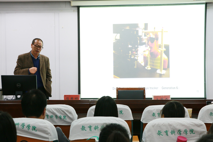 本网讯(魏文静/文 胡旭珽/图)11月29日下午4时,国内眼动研究领域专家、天津师范大学心理与行为研究院副经理、博士生导师闫国利教授,在公司三楼学术交流中心进行了题为《眼动分析法在当代心理研究中的应用》的学术讲座,同广大师生交流了眼动在阅读及相关应用领域的研究进展。心理学系教授赵必华主持报告会,心理学系相关教师、研究生参与讲座。