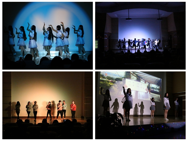 吉他与口琴合奏,再加上婉转动听的歌声,《小手拉大手》以欢快的节奏和完美的配合带给观众一场听觉上的享受;清新自然的吉他弹唱《遇见那些花儿》,质朴而又优美的旋律打动人心,勾起了大家对往日美好回忆的怀恋;一曲《告白气球》甜蜜而又浪漫,情景剧的表演更是锦上添花,使空气似乎都充满了爱情浪漫与美好的气息;校大艺团带来的乐器伴唱《惊虹一面》将古典音乐与流行音乐进行完美融合,古筝、琵琶、二胡等乐器的默契配和更是让人赞叹不已;合唱《萤火虫》饱含了大家对生病同学的关心与挂念,黑暗中无数闪动的荧光棒寄托的是大家的祝福,平凡而又感人至深。