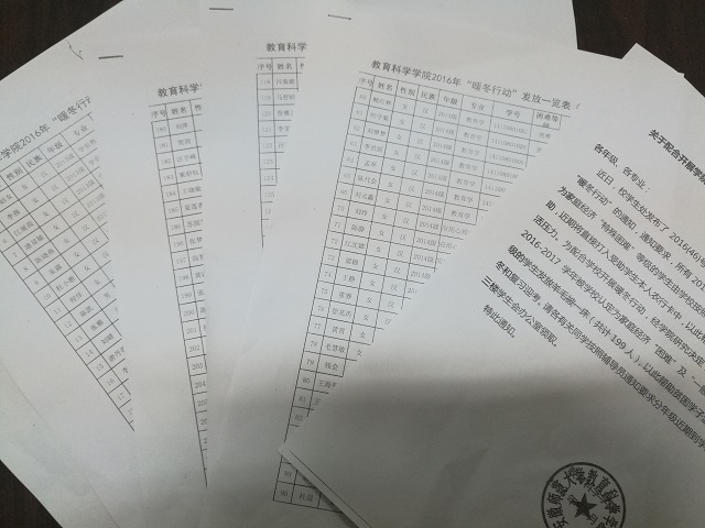 暖学暖冬,创新资助方式。本学期以来,公司将“暖学”与“暖冬”工作作为员工资助工作的重中之重来抓。通过辅导员例会的部署、各年级前期摸底,精准、快捷的缓解家庭贫困员工的生活问题。2016级小学教育是公司今新招的定向招生的专业,员工主要来源于贫困地区和农村家庭。“暖学”行动在保障公平的前提下,重点倾斜此类贫困员工。“暖冬”行动继承了公司实物发放的传统,统一采购优质品牌暖绒冬被,全员覆盖,在寒冷的冬季为贫困生送去贴心的温暖。
