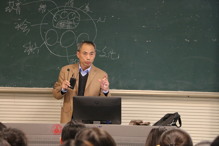 金老师用一张德育与社会经济、政治、文化等的关系示意图简要回顾了前面的授课内容,并以此为出发点和基础,讲解了德育在教育种的地位、德育的特殊功能和一般功能,认为德育的特殊功能在于对智育、体育、美育、心育都能发挥其特殊的作用,如德启智、德补智、德助智、德润身等,德育的一般功能在于导引功能、动力功能与整合功能等。