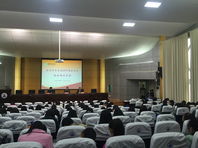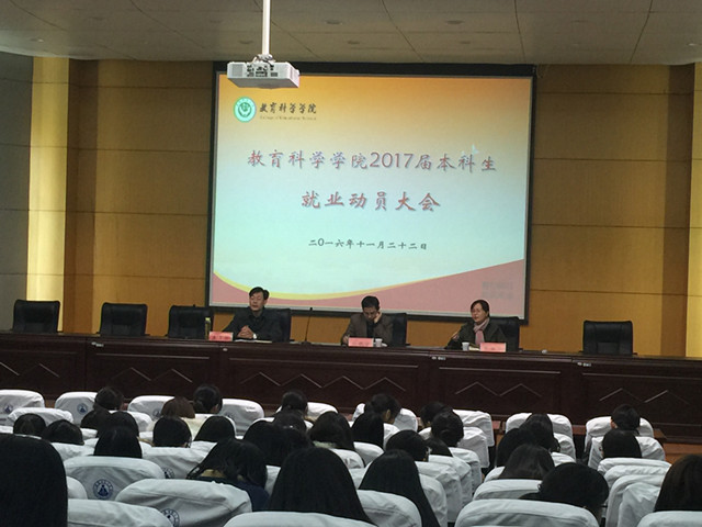 本网讯(教科院 马兴)你的未来,我们助航。11月22日下午,教科院在田家炳报告厅开展了一系列活动推进2017届毕业生就业。公司党委书记刘晓宇、经理桑青松、科研副经理聂竹明出席了本次会议,毕业班辅导员马兴、2017届全体本科毕业生参加此次大会。会议由公司党委副书记张如华主持。