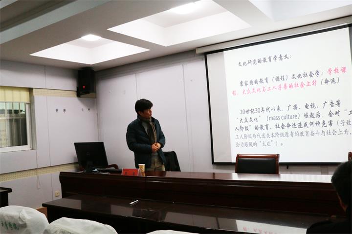 本网讯(文/刘雪泉 图/胡旭珽)2016年11月26日下午,在教科院三楼学术交流中心,华东师范大学博士生导师、教育部新世纪优秀人才计划人选周勇教授,为公司教育学专业学术型研究生进行了题为“文化研究与知识重建—以《清明上河图》为例”的学术讲座。讲座由副经理李宜江教授主持,公司部分青年教师聆听了讲座。