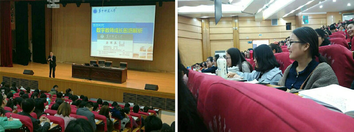 本网讯(教科院 苗艳侠)近年来,公司十分重视各专业与教育实践基地之间的协作与交流,不断探索育人新模式,积极组织开展形式多样的教育研究与人才培养活动。11月5日上午,在教育技术学专业与安师大附中精心协调与组织下,由刘和海、吴文涛老师领队,教育技术学专业15级、16级研究生以及15级全体本科生,参加了芜湖市教育局主办的“2016年芜湖市教育局直属公司骨干教师信息技术应用能力培训”活动之专家报告会。师生们集体聆听了我国知名教育技术学专家,华中师范大学博士生导师吴军其教授的“数字教师成长困惑解析”的专题报告。