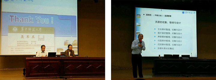 主题报告中,吴教授运用大量的案例和实例阐述了基于项目、基于任务驱动、基于参与体验、基于团队合作、基于动手实践等信息时代新型教学方式的教育理念与方法。之后对于数字教师成长过程中遇到的四大困惑进行详细解释。困惑之一(错误认识):用多媒体学习成绩下降,不用上升。他指出使用媒体要符合教学目标、适合教学对象、符合教学条件、贴近教学内容并且合理选择教学媒体,但是使用媒体的同时,板书是万不可丢弃的。困惑之二(缺乏信心):不懂计算机技术,做课件好难!教师只是课件的设计者,而不是课件的制作者。困惑之三(没有兴趣):做课件工作量大,还是用粉笔黑板方便。吴教授认为多媒体使用可以多感官刺激员工达到更好的记忆效果,另外要善于利用现有教学资源,如:中央电化教馆资源中心(www.cer.com.cn)提供的各类教学资源,提醒教师还有善于发现收集资源。困惑之四(不明方向):到底怎样才能成为一名合格的数字教师,教师应转变观念:教师是学习情境的创设者、员工学习兴趣的激发者、教学活动的组织者、员工建构知识的辅导者,并且要能够驾驭对六类多媒体的合理运用。