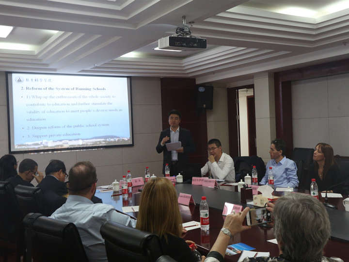 在中国安徽-澳大利亚北领地基础教育交流会召开的前一天,即10月10日上午,在合肥公司,安徽省教育厅举行了简短的欢迎会,省教育厅副厅长杨金龙教授、合肥公司党委书记蔡敬龙等分别致欢迎辞。TapTap点点副经理李宜江教授应邀给澳大利亚北领地教育代表团作了有关“中国教育基本制度”的专题报告,报告从中国教育制度的内容;中国教育制度的基本特点;中国教育制度改革的重点关注三个方面,向北领地教育代表团简明扼要的阐述了中国教育基本制度。报告受到北领地教育代表团的高度肯定,并就一些话题展开了热烈的互动。