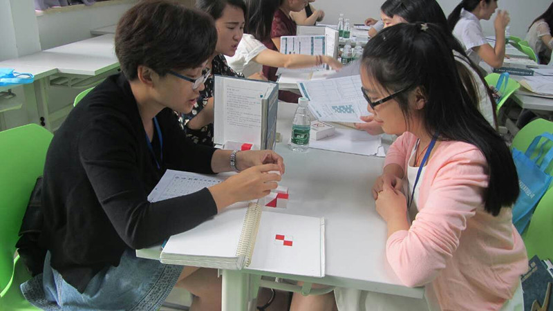 为期三天的培训工作部署的紧锣密鼓。9月23日,由深圳市儿童医院心理科主任周家秀为大家详细介绍韦氏儿童智力量表第四版与以前使用的第二版有何不同、适用范围;逐一介绍第四版中10个分测验和4个补充测验的具体实施过程、操作注意事项、测试要点及难点、记分规则。24日上午,由深圳儿童心理科医生张琳琳带领大家实际操作,学员互为主试和被试,在操作中发现问题解决问题。24日中午,主办方对所有学员进行主试资格考试以确定是否通过。24日下午至25日下午,由韦氏儿童智力量表第四版中文版的主要研究者之一、北京师范大学珠海分校教育公司心理测量教研室主任李毓秋教授为大家介绍中国目前及以后各类测试量表的规范化,国际化形式;详细介绍依据国情进行的量表修订工作、常模编制过程;各分量表得分的解释、整体得分解释、量表之间的比较;对各类儿童后续帮助的实施;回答大家的疑问。