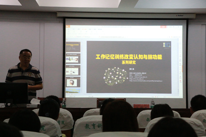 本网讯(王玉思/文)9月6日下午两点,来自南京大学社会公司心理学系主任、博士生导师周仁来教授在公司三楼学术报告厅作了一场以《工作记忆训练改变认知及脑功能系列研究》为主题的学术报告。此项活动是“皖江心理大讲坛”系列报告的第五十四讲,也是心理学省级综合改革试点专业系列活动之六。学术报告会由心理学一级学科硕士点负责人葛明贵教授主持,心理学系部分教师及心理学专业研究生聆听了报告。