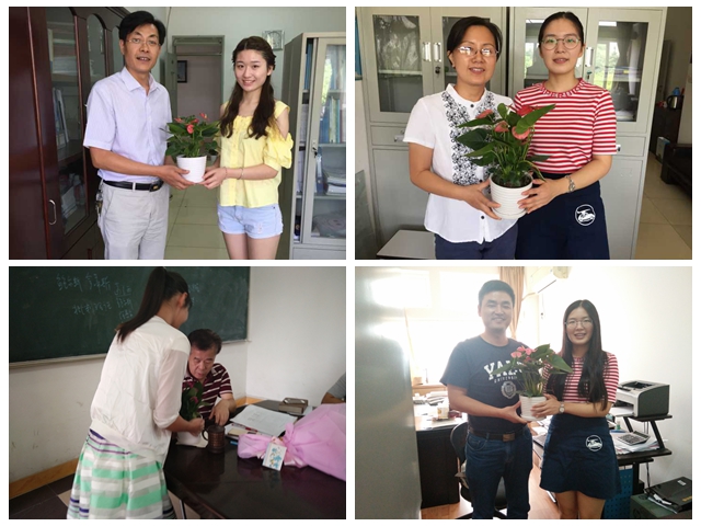 沿袭去年传统,公司今年依然以绿色盆栽作为教师节的特别礼物。教师节当天,领导老师们收到了同学们赠送的绿色盆栽,三两朵初绽的鲜花表达了学子对老师最真挚的祝福。
